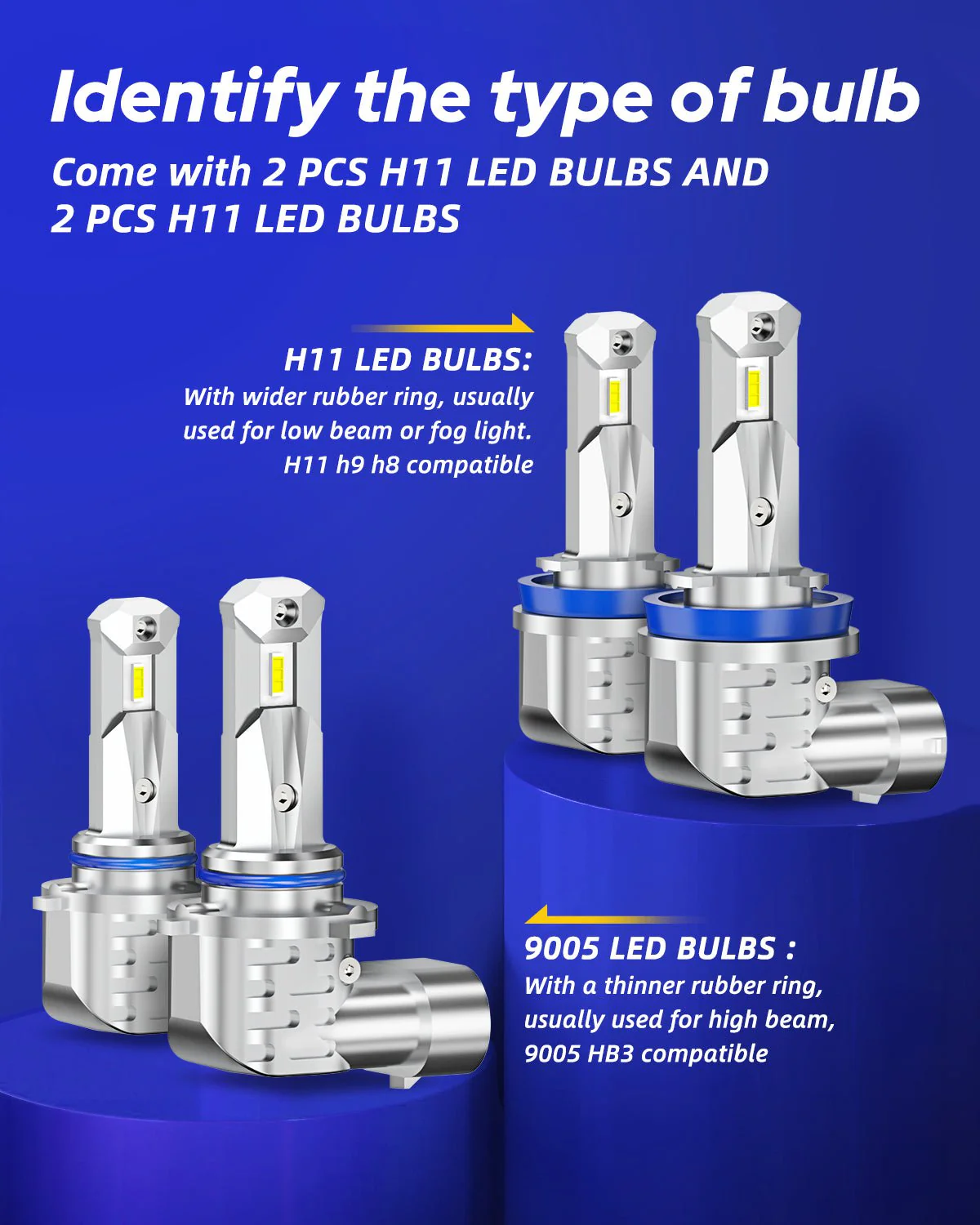 No radio interference - Those led 9005 h11 headlight bulbs are built-in upgraded intelligent IC driver, not only instant start lights but also enhances the ability to resist interference, creating a comfortable listening to radio environment.